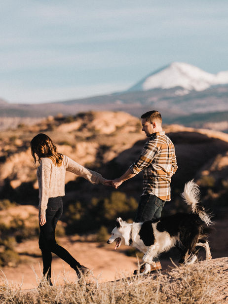 Chris introduced himself to Kelsey among mutual friends on several occasions over several years until she admitted that they had, in fact, already met ... a few times. After meeting for the first time, for the last time, they were both invited on a camping trip in Southern Utah. Mix a magical desert landscape, a sky full of stars and a healthy dose of whiskey around a campfire - and that was that. They quickly became a disgustingly cute lovestruck couple, and have been ever since. Two years, ten countries, one lovable Border Collie, a new house and countless adventures later they went camping in that same desert where Chris said "From the third time I met you, I knew", and he asked Kelsey to marry him. She said yes.